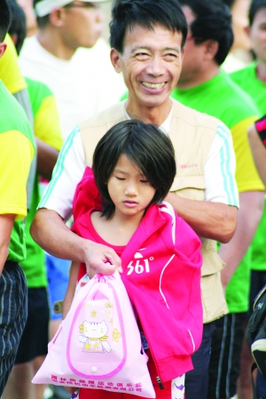 1月1日,张建民带着张慧敏参加海口马拉松赛。 石岩/摄