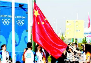 2004年8月9日,中国代表团在雅典奥运村举行了庄严肃穆的升旗仪式。