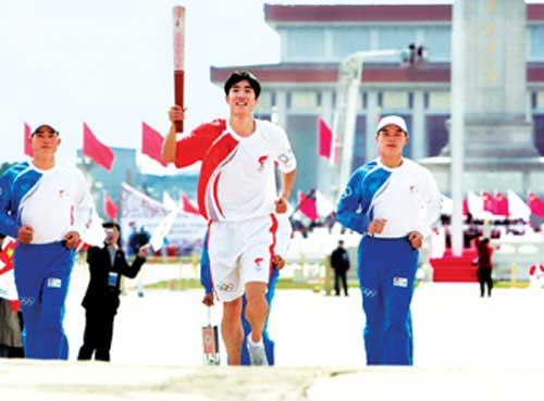初春时节,昨日的北京尽管阳光明媚,但气温却不高。站在天安门广场上,阵阵凉风拂过,天气有些微凉。怕刘翔着凉,随行人员建议他换上长裤参加仪式,却遭到刘翔拒绝。他解释,这是夏季奥运会,火炬接力手应该体现这一特点。而自己是代表中国向世界展示风采,“穿着更应该与主题相符。更何况,几天前圣火在雅典进行采集接力时,火炬手穿的都是短款服装,我应该与他们保持统一。”就这样,身着红白双色火炬手服装,一身短打的刘翔手执火炬,跑过长安街、跑进天安门,始终笑得阳光灿烂。