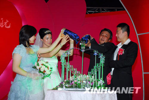 9月27日,王楠与丈夫郭斌在婚礼现场。新华社发(初阳 摄)