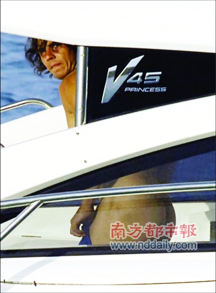 自温网后在马洛卡的海滩上被拍到和20岁的漂亮女友卡希尔的甜蜜舌吻照,纳达尔仍然向往着大海。不过这一次他的代价就有些惨痛了,因为他被人抓拍到自己在游艇上换内裤的全过程!等到新球王惊觉不妙时,为时已晚。但“80后”的纳达尔果然很洒脱,发觉被偷拍后他依然保持着好心情,饶有兴致地玩起沙滩足球。