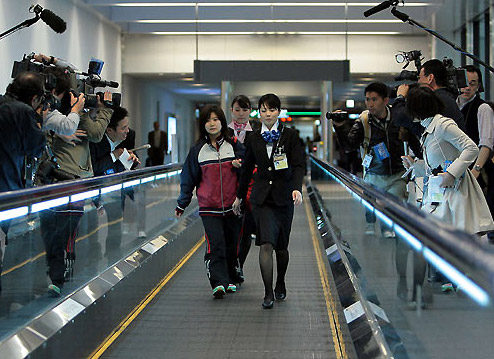 当地时间12月2日晚上,绯闻缠身的福原爱在参加了两项欧洲赛事后回到日本国内。由于近日日本著名八卦杂志《星期五》连续曝光其与日本网球王子锦织圭的恋情,福原爱成为日本媒体追逐的焦点,约60名记者在其抵达的成田机场守候。