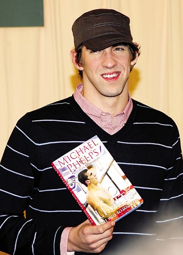 在北京奥运会上独得8金的美国游泳名将菲尔普斯(见右图)9日在曼哈顿举行了他的新书《无极限:走向成功》的签售会,吸引了大批支持者,场面异常火爆。