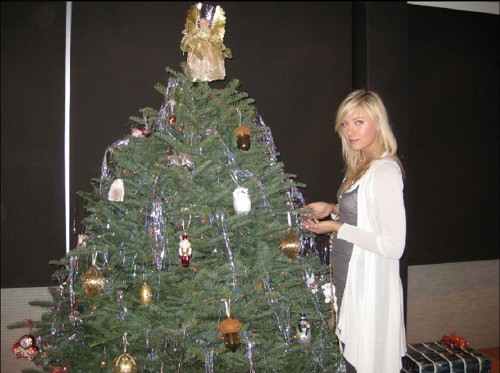 莎拉波娃圣诞树旁留倩影 金发披肩楚楚动人(图)