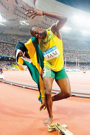 博尔特在今年北京奥运会上赢得比赛之后,都会用一种前后摇摆的舞蹈来庆祝自己的胜利。这种舞蹈是由大卫·史密斯创作的。据警方透露,史密斯在金士顿的一家夜总会和两名男子发生争吵,随后,两名男子掏枪击中了史密斯的头部和胸部,致其伤重而亡。京友