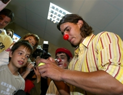 一向热心公益的纳达尔,很喜欢与孩子们玩乐。四年前,纳达尔就在马洛卡杜雷塔医院扮作小丑安慰受到病痛折磨的孩子们。西班牙RTVE电视台称,这是孩子们令人难忘的经历,“从他们惊讶的面部表情当中就可以看出,对于世界第一的网球选手能亲自来给他们讲童话,是多么难以置信。”其实,一向喜欢看动画、玩PS2游戏的纳达尔在场外就是个长不大的孩子。这个漫画《七龙珠》的忠实拥趸,出外比赛旅行时也总带着《七龙珠》的DVD,所以讲起童话来也头头是道。“其实我不大会唱歌,相反为孩子们将故事是件不错的工作。”纳达尔坦言。
