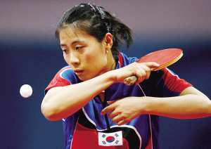 金暻娥是韩国著名女子乒乓球运动员,现世界排名第9位,擅长正手反胶、反手长胶的削球打法。在不具备绝对实力和领先技术的情况下,金暻娥之所以能够在国际乒坛立足,主要依靠的是自己顽强的意志和反手长胶“牛皮糖”般的削球。黄德强