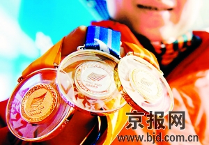 本届大冬会奖牌水晶镶金,取自中国古代历史上著名的美玉——“和氏璧”的造型。金牌由象征着尊荣华贵的“黄金”与象征和谐纯洁的“水晶”两种材质组合而成,以黄金体现出在冰雪竞技运动中取得胜利的最高荣誉,以水晶体现出冰雪运动的特色以及公平、公正、公开的体育竞争价值观。