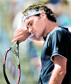 印第安维尔斯公开赛,穆雷正期待用又一个冠军证明自己。费德勒和穆雷之间的较量自然充满火药味。不过面对穆雷,之前的交战记录似乎在天王心中留下了阴影,首盘比赛就出现14次非受迫性失误显然不像稳定的费德勒应该表现出的状态。同天王手握3个破发点而全部错失相比,首盘比赛第9局,穆雷却抓住了首盘惟一的破发机会,以6比3