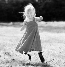 北京残奥会上,南非运动员皮斯托瑞斯被世人誉为“刀锋战士”。据《太阳报》报道,英国又出现了一位新的“刀锋战士”,那就是5岁的伦敦无肢小女孩埃莉。近日,科学家们给她装上了刀锋状碳纤维簧片的四肢假体后,埃莉成为世界上年龄最小的刀锋状碳纤维簧片假肢携带者。值得一提的是,埃莉迅速适应了假肢并行动自如,奔跑速度居然比原来增快了一倍。