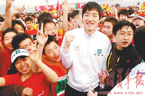 刘翔作为主办方的代言人出现在主席台上,原本他还要向北京智泉打工子弟学校的参赛学生赠送自己签了名的长跑节T恤衫,但因为热情的观众几乎引起拥挤而被改在赛后进行,就连事先约好的采访也被迫取消。即便如此,“刘翔”、“刘翔”的喊声还是持续了很长时间。