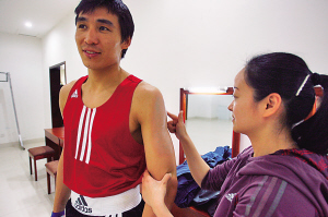 谜底很快揭晓,他身边的朋友从油彩盒里抠出一大块,直接抹在张小平左臂上——那里有一片彩色的文身。“去年奥运会后国际拳联对业余拳手做出新规定,不准文身,全运会开始执行这个新规定,我这个文身可麻烦了!”张小平很无奈得看着手臂这匹展翅的“天马”,这是张小平在2007年回内蒙古文的。“我自小在草原长大,对马有特殊的感情,看到这个图案特别喜欢,所以就文了。”
