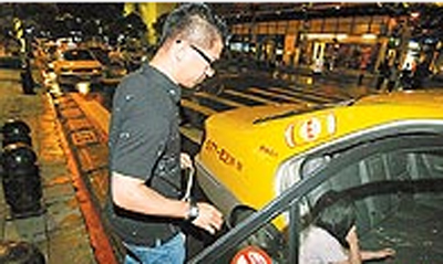 孙志浩(左)和女儿上出租车离去,梧桐妹仍热线不断。