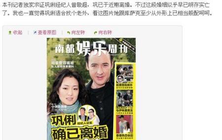 谢晓在其微博上称:“本刊记者独家求证巩俐经纪人曾敬超,巩已于近期离婚。不过这段婚姻似乎早已明存实亡了。我也一直觉得巩俐适合找个老外,看这图片她跟库萨克至少从外形上已相当般配呵呵。”