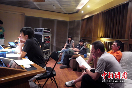 冯小刚亲赴《唐山大地震》主题曲的录音室。