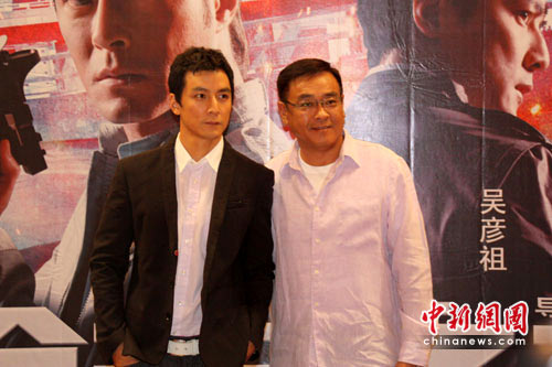 中新网成都6月29日电(何雨芯 黄安安)29日下午,金像奖导演尔冬升携男主角吴彦祖亮相成都,为新作《枪王之王》宣传造势。