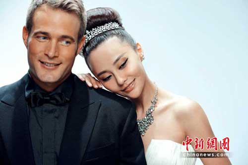 婚纱照曝光 依偎洋老公 秀鸽子蛋(组图)
