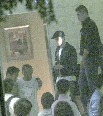 近日陈冠希出席新店派对,现身某酒吧派对现场只逗留不到半小时就速闪人。陈冠希出席活动后,由两名保镖护送从酒吧后门离开。在门口遇到记者拦截拍照,陈冠希拉低帽檐。