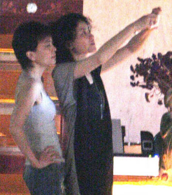 王菲与李亚鹏经纪人马葭一起看着拍摄的照片