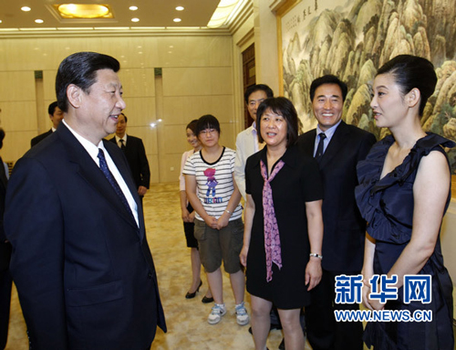 7月1日,中共中央政治局常委、中央书记处书记、国家副主席习近平在北京人民大会堂会见出席电影《第一书记》首映式暨图书《沈浩日记》首发式的有关人员。新华社记者 刘建生 摄