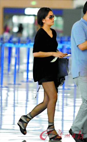 当日,赵薇在拍完广告后就动身赶赴机场。在上海电影节上以一身红色礼服现身的赵薇,被指状态不错但身材没有完全恢复,不过当日出现浦东机场的赵薇,上身一身宽松的黑色休闲服,下身以超短热裤搭配网眼丝袜,露出修长腿部,再搭配墨镜,显得星味十足。