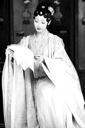 看着黛玉、宝钗、秦可卿等人的发型,怎么看怎么像徐克拍的《青蛇》,京剧里的青衣、花旦都是这么贴的头发,舞台形式感很浓,据说这叫“贴片铜钱装”,着实让人惊艳。估计观众初一看肯定受不了,再一看还是受不了,最后受不了也得受了。不知道少红导演是怎么考虑的,也说不定这会在时尚界掀起一股潮流,以后子怡妹妹、冰冰姐再去好莱坞、戛纳作秀,来个“贴片装”,肯定会被老外惊为天人,引起一片“My God(我的天)”之声。