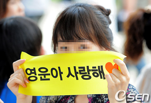 粉丝拿着写有“Yeong-un(强仁本名)我爱你”的条幅,正在等待强仁。