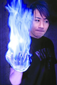 2004年,刘谦在日本表演手喷出火的魔术,因燃烧不完全,火花将他的双手烫出大水泡,将火药减半,火势还越大,一连表演4场后,他说:“已经闻到烤肉的味道。”。