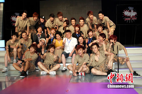 中新网长沙7月8日电(记者 邓霞 周凌)由韩国金牌音乐制作人金亨熙掌门的“快乐天团”是今年“快男”的一大亮点。在今日长沙举行的快男12强媒体见面会现场,一直在默默刻苦训练的“快乐天团”18名候选者也一同亮相,并激情展示一段热力澎湃的精彩舞蹈,让人惊艳不已。