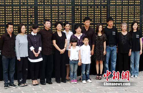 中新网唐山7月12日电(记者 白云水)12日,电影《唐山大地震》剧组全体演艺人员在著名导演冯小刚的率领下,来到唐山地震遗址纪念墙向唐山大地震罹难的24万同胞献花表达哀思。
