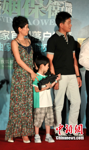 佟大为、马伊琍与他们的“儿子”。李季 摄