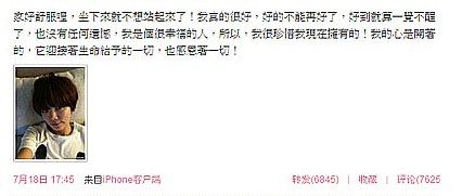据台湾“今日新闻”消息,对于男友被传开豪车带辣妹开房,Ella在微博留言高喊幸福:“我真的很好,好到就算一觉不醒,也没有任何遗憾,我是个很幸福的人,所以很珍惜现在拥有的!我的心是开着的,迎接生命给予的一切,也感恩着一切!”看来她似乎对男友仍然依依不捨。