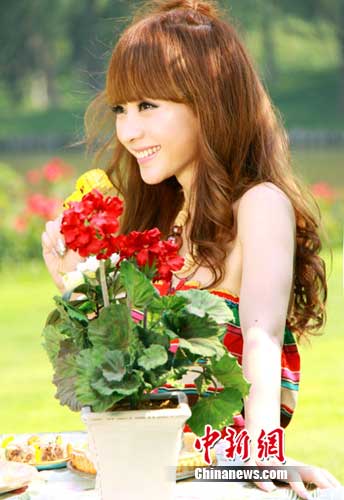 组图:美女主播柳岩拍野餐写真 身着各色彩裙(2)