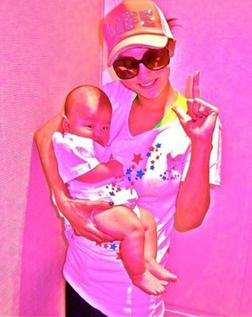 母子装贺Lucas生日 小儿子正式亮相(图)