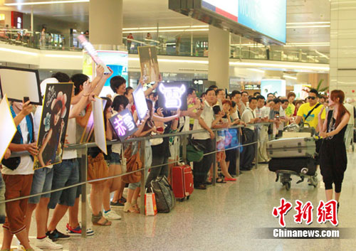 赤雪黑衣甜美空降上海 粉丝疯狂激动引发骚乱(图) (4)