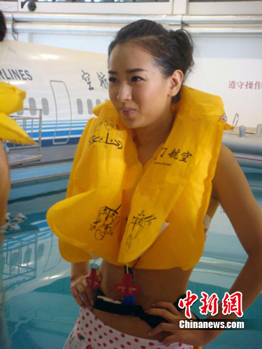 中新网8月3日电 日前,正在厦门热拍的张纪中新剧《空姐日记》在游泳池拍摄一场在水中发生的情节戏,主演胡兵和两位女主角甘婷婷、SARA纷纷潜入水中拍摄,虽然两位女主角都带有救生衣,但在拍摄过程中还是出现了一些小意外。原来,韩星SARA和甘婷婷都是旱鸭子,两人在下水后都不知如何摆动,狠狠的喝了几口水,吓的一旁的胡兵利马游过去拯救两人,趁机上演了英雄救美人的一幕。