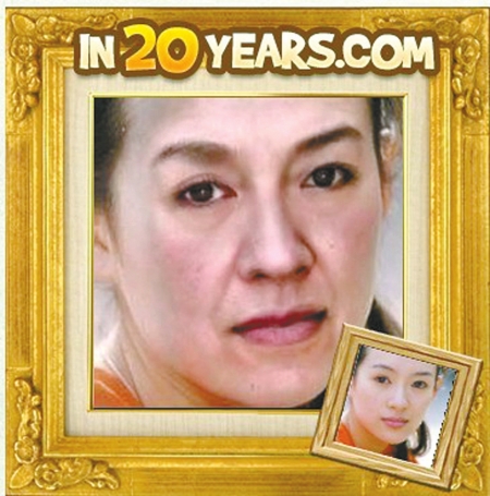 “第55届戛纳电影节上有一部非常独特的电影:以伯纳多·贝托鲁奇、迈克尔·雷德福、陈凯歌为首的15名顶级名导每人拍摄10分钟的短片,然后集结上映,这部以时间流逝为主题的作品叫《十分钟年华老去》,如今,美国图片网站“20年后”(http://)制作了一个在线程序,每个人把自己的照片上传,一分钟之内,就可以看到自己20年或30年之后的容颜。这个小程序在全球迅速走红,堪称为最潮的在线软件。也有好事网友把中国10位当红女明星和4位当红男明星的照片上传,引起轰动。