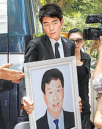 戴思聪的大外孙昨手持他的遗照前往灵堂。