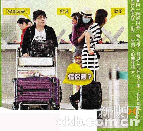 旧爱黎明同乐基儿十分恩爱,但舒淇至今仍是单身。不过记者发现已经空窗了很久的舒淇最近心情大好兼春风满面,日前完成宣传活动的她立刻换上度假服,急急赶到机场会合一名男性化打扮的年轻女友,然后双双登机外游,两人的亲密关系十分耐人寻味。(新快报)