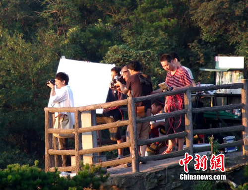 中新网张家界8月5日电(周芦屾 邓道理)8月3日至5日,“台湾情歌王子”张信哲携带他的音乐制作团队在张家界黄石寨景区纵情高歌,全新打造将于9月推出的以张家界为内地唯一外景地的MV作品《最初》和《好像爱情》。