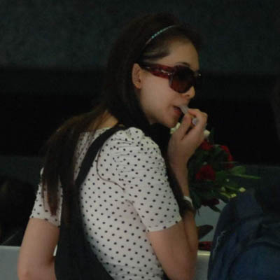 林志玲扮清纯发箍妹无人识 反复涂唇膏自提行李(2)