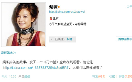 对娱乐圈的明星们来说,微博应该是目前为止最为安全的互动平台。有选择地曝光着自己的生活,维持着良性的曝光率,这点的可控性对明星来说,具有相当吸引力。比如,赵薇怀孕,她可以选择微博来进行“温和”的表达,而不用将这件私人事件上升到娱乐头条“我闻着厨房里飘来的咖喱香,现在的日子过得很幸福”。这应该是最聪明的一种表达。而产后复出,赵薇的“琐事汇报”也成功地转移了读者们对“孩子他爸”的猜想。