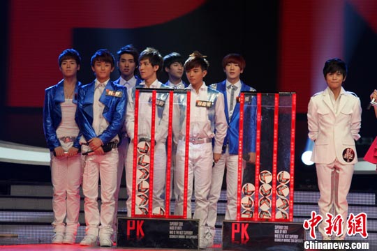 中新网长沙8月7日电(记者 邓霞)8月6日晚,正式成军的快乐天团8090组合空降快男舞台,与快男七强进行踢馆赛。经过两轮激烈比拼,这支由中韩老师近两个月魔鬼式专业打造的偶像组合刚登上舞台就被“秒速”出局,让人唏嘘不已;而一直在努力克服神经性耳聋的陈翔,以“2010快男”总决赛最高分首夺周冠军。