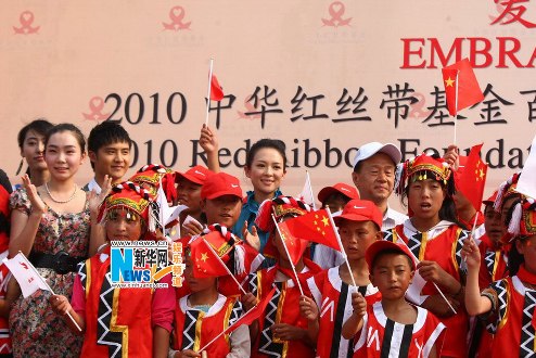 章子怡顶烈日关注艾滋病 任红丝带形象大使(图) (2)