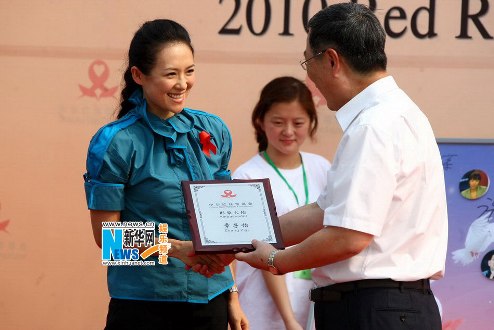 章子怡顶烈日关注艾滋病 任红丝带形象大使(图) (5)