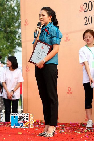 章子怡顶烈日关注艾滋病 任红丝带形象大使(图) (6)