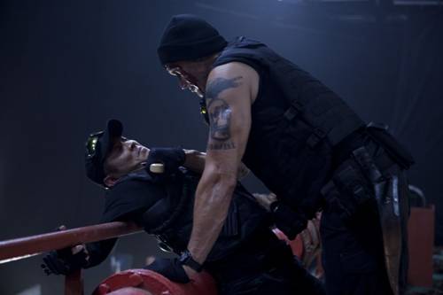 中新网8月10日电 聚集国内外功夫硬汉的好莱坞大片《敢死队》将于本月20号登陆中国内地各大影院。此影片最大的看点和亮点除了全明星的阵容之外,就是片中呈现多种功夫,集徒手搏击技巧之大成。东西方武术的大对决,让观众真正看到了武术打斗上的“百家争鸣”。