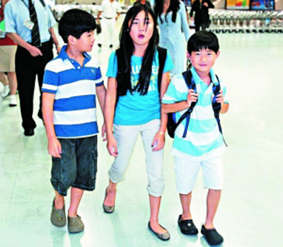 长女芷欣(中)与母亲如饼印一样,次子可聪(左)与小儿子以聪则较像父亲。