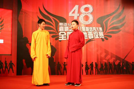而记者在8月8日举办的移动MM之《喜剧之王2》星呢选秀大赛48强晋级赛华北站的比赛现场,意外的发现参赛的17位选手中17号的黄鹤飞竟然也是来自德云社的弟子。比赛中黄鹤飞的表演基本上都以相声为主,只是比赛最后一个环节黄鹤飞以醒目的红裤衩外穿的超人造型相声表演让评委很是不解。