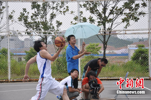 高大男子气十足的王野拿起了心爱的篮球,立即带劲地跑起来,在篮球场上挥洒自如的他,还不停地耍帅,尽显青春朝气。